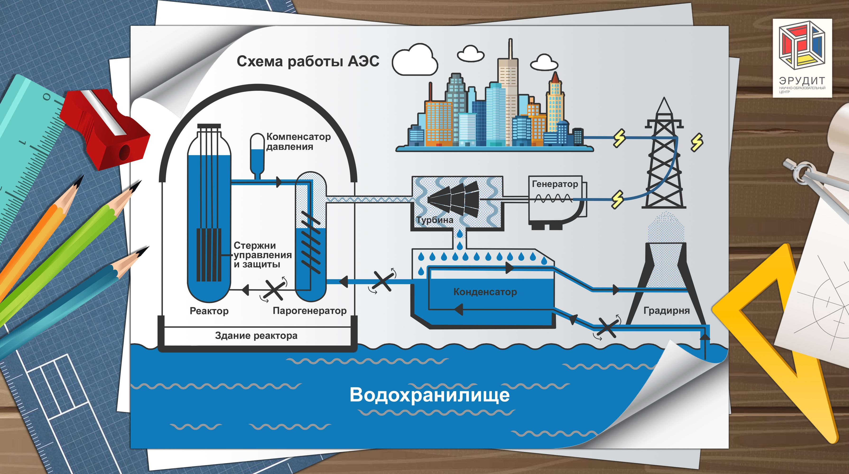 Информационный лист «Схема работы АЭС»: скачать